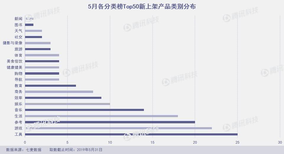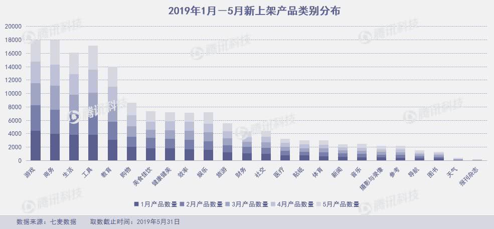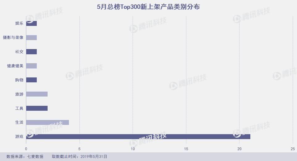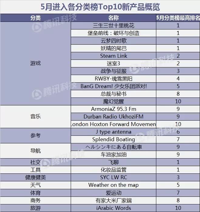 5月份,新上架产品集中在游戏、商务、生活和工具类别。