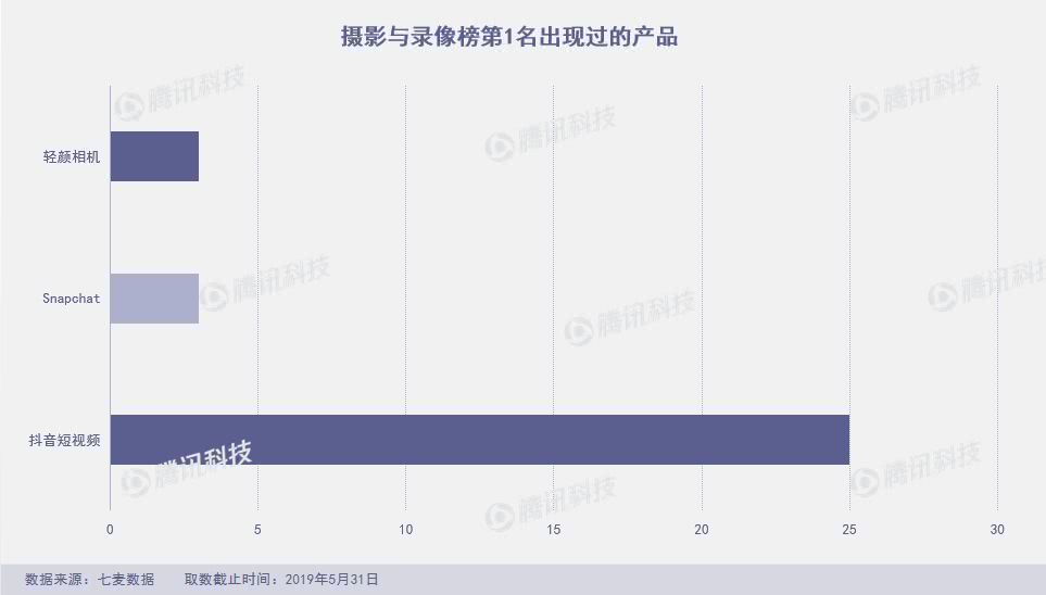 抖音短视频在摄影榜霸榜时间依旧最长,达25天。