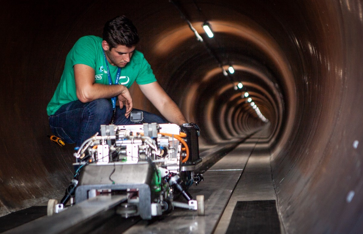 SpaceX 2018超级高铁竞赛团队的一名成员正在进行调试