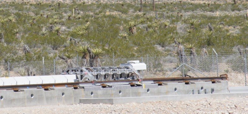 超级高铁(Hyperloop)是一种以管道为基础的亚超音速运输系统,它在干燥的内华达(Nevada)沙漠进行首次公开测试的样子就像是一台雪橇。当它飞驰在测试短道上的时候,说好的每小时115英里的速度也只持续了几秒钟。