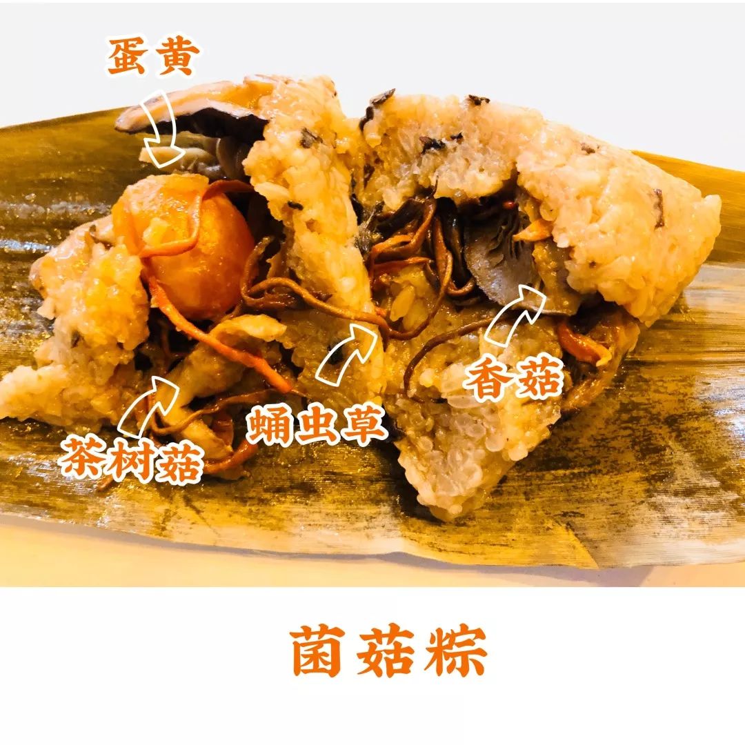 四种不同的菌菇:蛹虫草条条鲜嫩水润,真姬菇和茶树菇丁十分饱满,再加上粽子的老朋友香菇,各有千秋,只要你没有蘑菇恐惧症,就没有一款会踩雷。