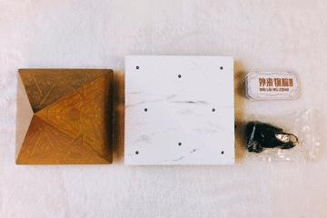 粽子先放一边,这个看起来像「金字塔」的容器其实是个悬浮灯。灯一亮、金字塔一转,科技感就扑面而来。