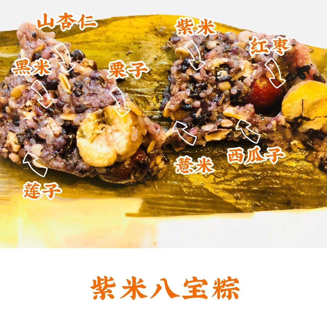元祖龙舟粽礼盒一共有台湾风味、菌菇、紫米八宝3种口味,两甜一咸,共计9个粽子。每次剥开,都是一次小型的视觉冲击。