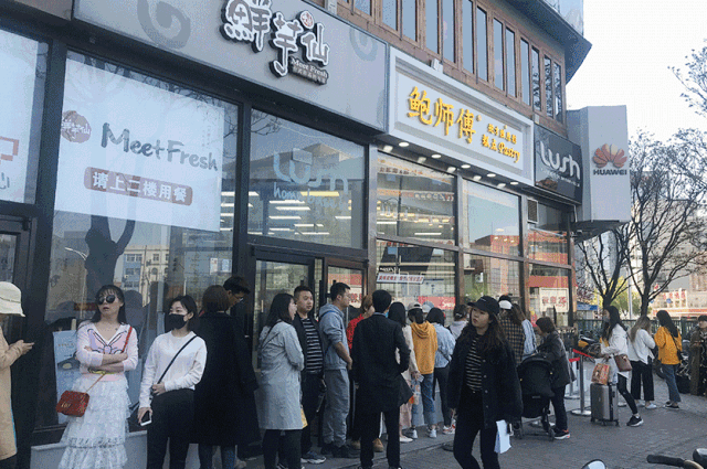 都是街边店,都在商圈和地铁口附近,人流量比较密集的地方。没有堂食,排队、购买、打包带走,只有一个收银窗口,所以容易造成排队的现象。