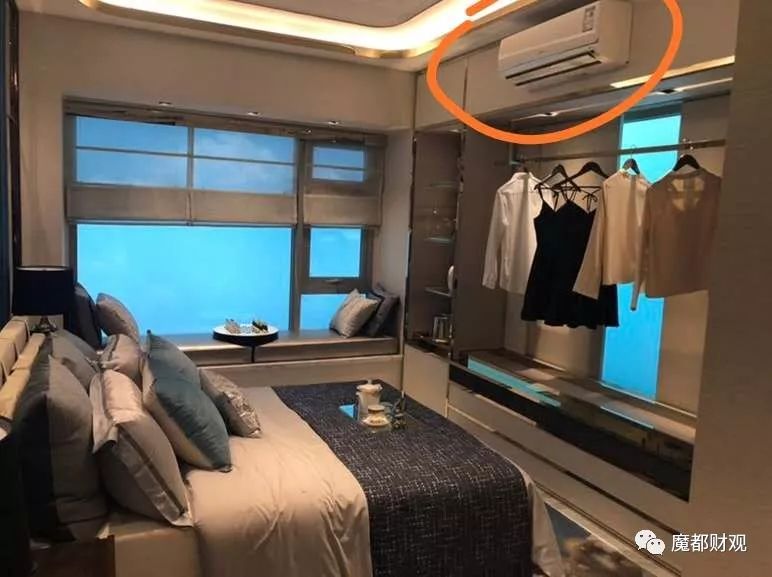 第二,高尚领域的装修理念让人有些担心。从样板间的布局来看,竟然没有中央空调。我看到了挂式空调,而且是正对着大床上吹。不知道睡在床上会是什么感受,而房企到底是想营造一个什么样的居住场景。