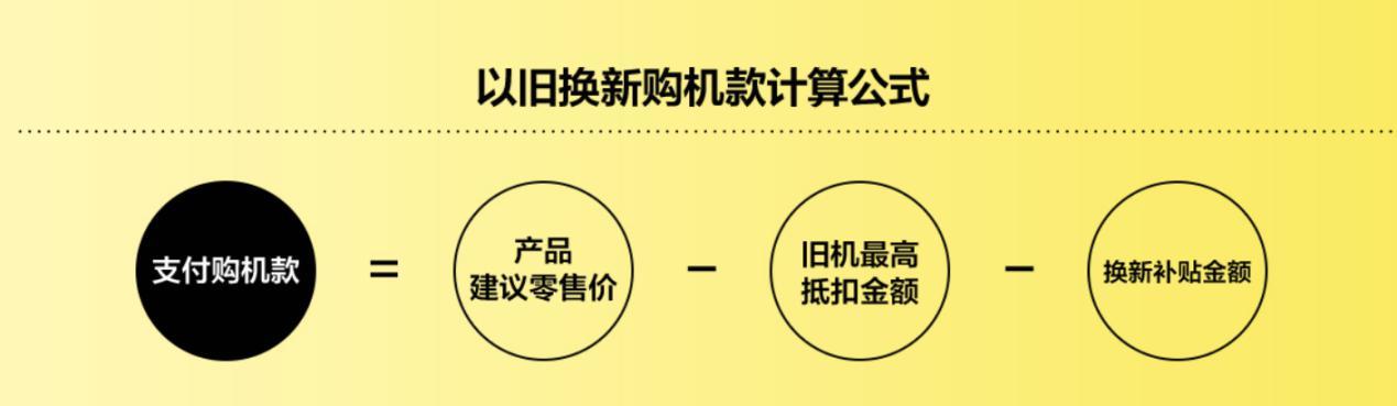 如果不太明白具体的“玩法”,看看这个简明的公式吧:支付购机款=产品建议零售价-旧机最高抵扣金额-换新补贴金额。