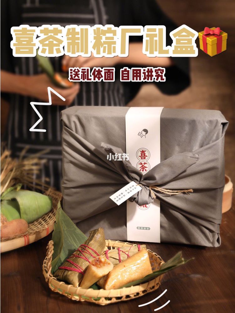 喜茶此次在端午节推出了名“喜茶制粽厂”的端午礼盒,每盒装有8只,包括4种口味:紫薯莲蓉、芋泥肉松、麻辣牛肉和麻辣小龙虾。每盒售价168元,可以在喜茶小程序购买。
