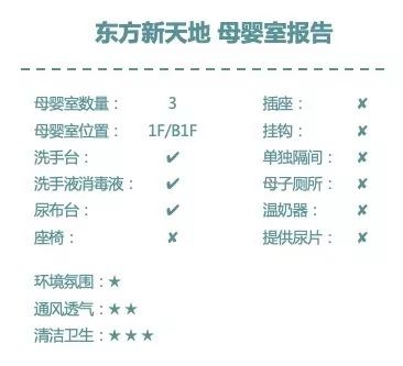 据保洁员说,东方新天地B1层还有2个母婴室。但地方隐秘,缺少标识,小栖逛了好久也没能找到。如此缺乏母婴室的商场,也难怪大多是年轻上班族来这里吃饭逛街,很少见到推着婴儿车的宝妈奶爸的身影。
