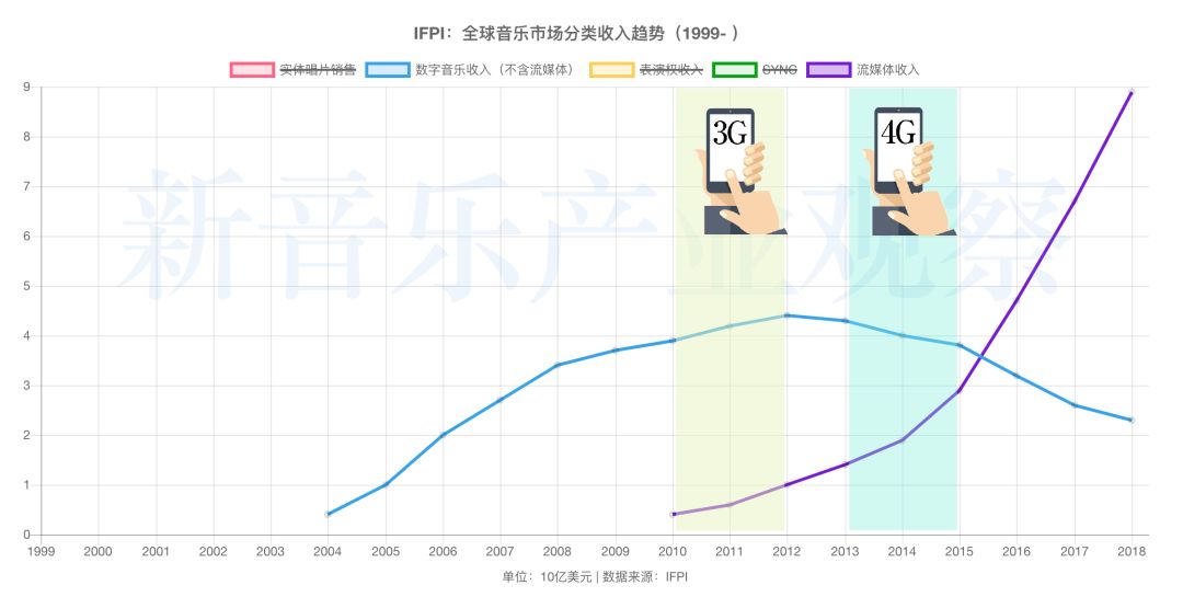 而这也是智能手机带来的便利。从数据上,我们可以看到,流媒体真正发展起来是2011年。