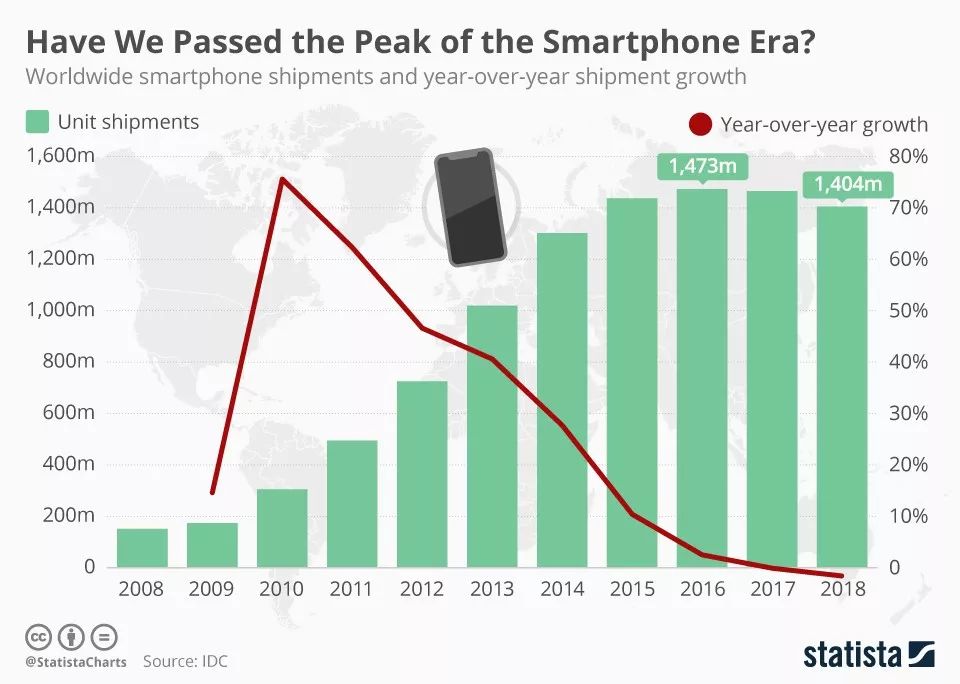 从上图中可以看到,2010年-2011年是智能手机销量增长最快的两年。