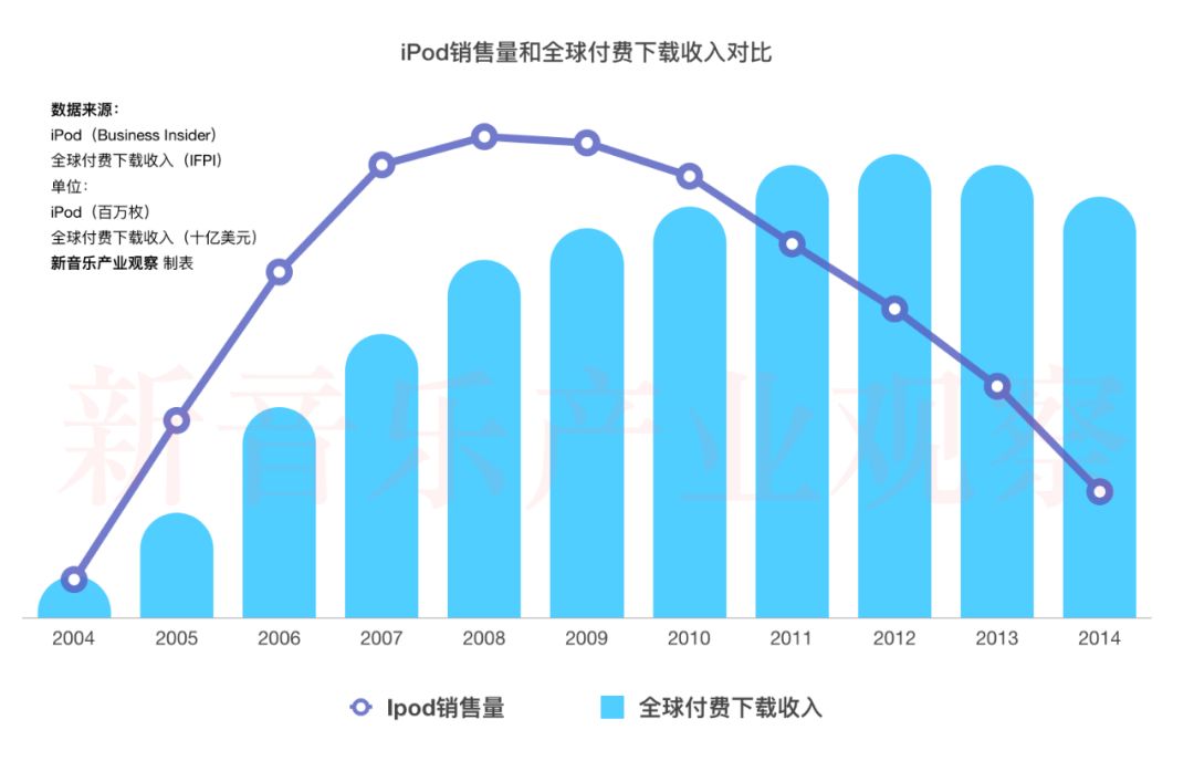 智能手机出现之后,MP3播放器就成了鸡肋,连曾经不可一世的iPod都卖不动了。加上,3G开始,移动端网速大大提升,消费者就更愿意用手机听歌了。