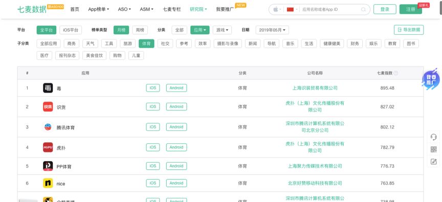虎扑依然是体育领域的头部app。据七麦数据,体育app排行榜单上,虎扑投资的毒app、及旗下识货app、虎扑app分别占据第一、第二、第四名。