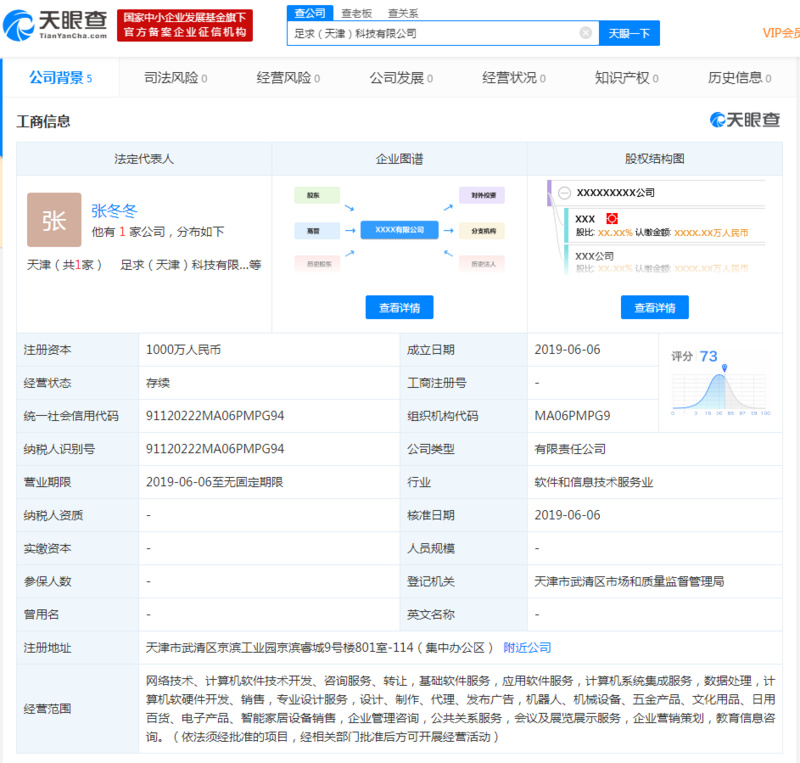 36氪讯,天眼查数据显示,6月6日,足求(天津)科技有限公司注册成立,该公司最大股东为天津人为科技有限公司,持股70%,喜马拉雅主体公司上海证大喜马拉雅网络科技有限公司持股30%,为第二大股东;该公司经营范围包括机器人、电子产品、智能家居设备销售等。
