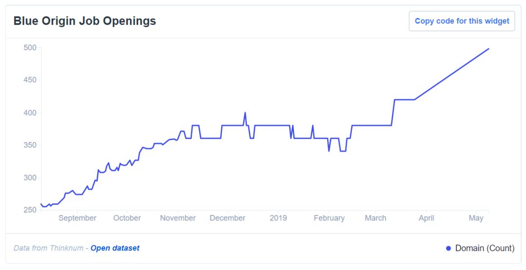 在资金支持下,BO员工数在2016年到2018年不到两年时间里翻了一番,达到1500人左右,而SpaceX大约7000人,人数差再度回到5倍。这个倍数将很快降低,SpaceX的招聘人数在2018年开始首度低于BO,一定程度上标志着这家公司进入成熟期。