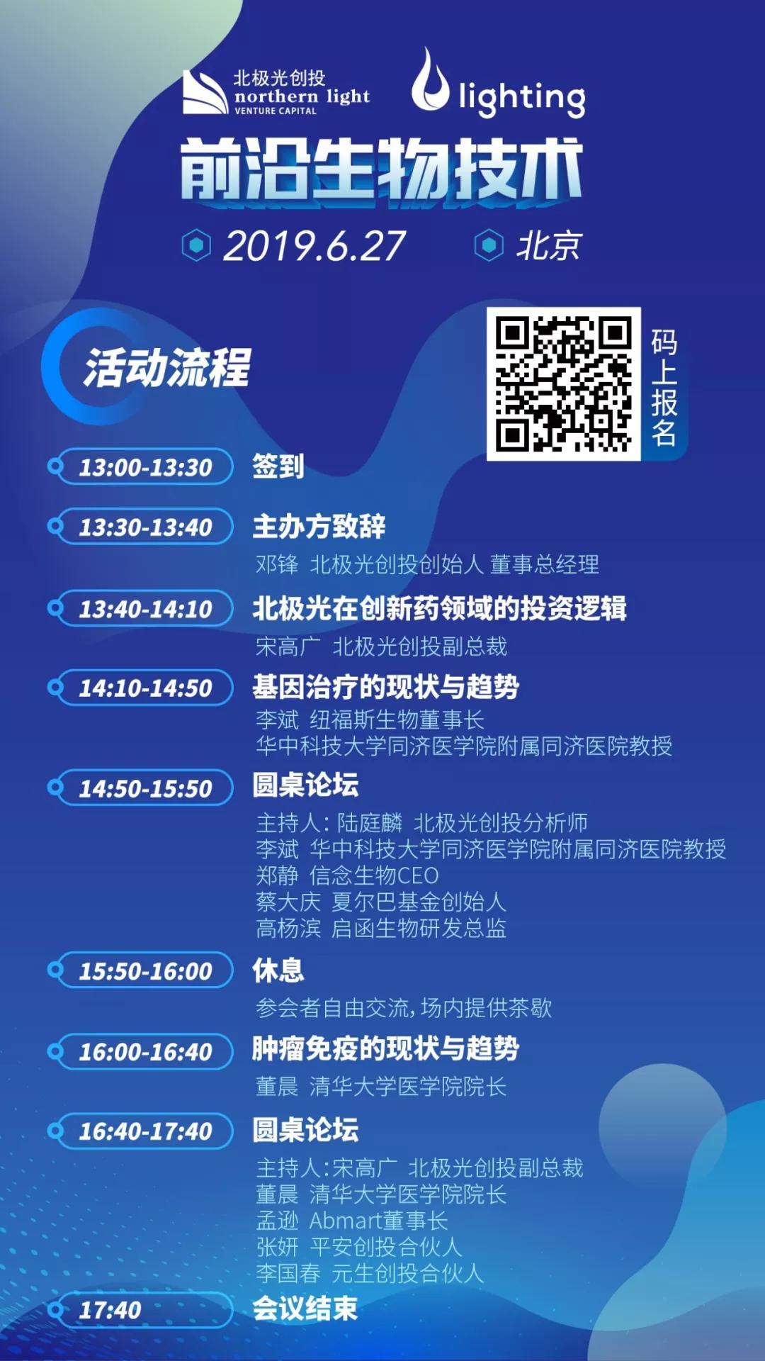 带着这些问题,6月27日,北极光创投主题活动“Lighting 2019 前沿生物技术”,将集结相关领域的专家、创业者和投资人们,共同探讨肿瘤免疫和基因治疗未来的发展方向,从研发、投资、临床等各个角度碰撞对技术转化的看法,力图把握科技发展和产业变革的趋势,与行业共享共勉。