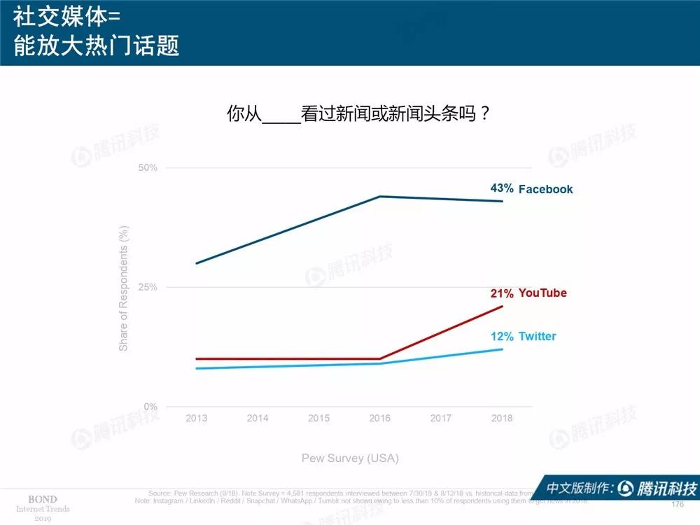 报告表示,如今有43%的人通过Facebook来获取新闻,21%的人通过YouTube,12%的人通过Twitter。所以互联网女皇认为,社交媒体可以放大热门话题。