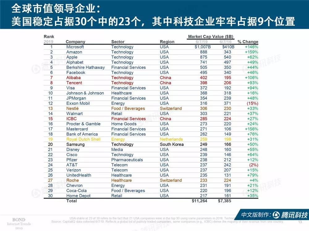 报告公布了截止6月7日,全球市值前30大互联网公司榜单,其中美国18家,中国7家,日本1家,加拿大1家,澳大利亚1家,阿根廷1家,瑞典1家。