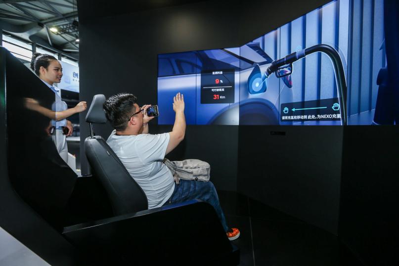 观众在现代汽车展区进行近距离体验