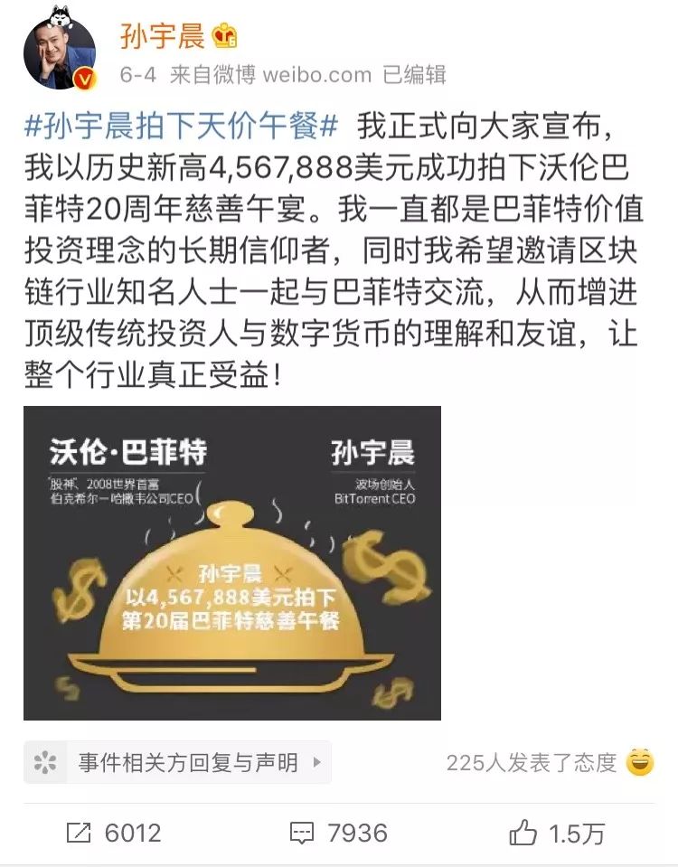 一位名叫孙宇晨的中国90后男孩,以456.7888万美元(折合人民币3154万)的价格拔得头筹。