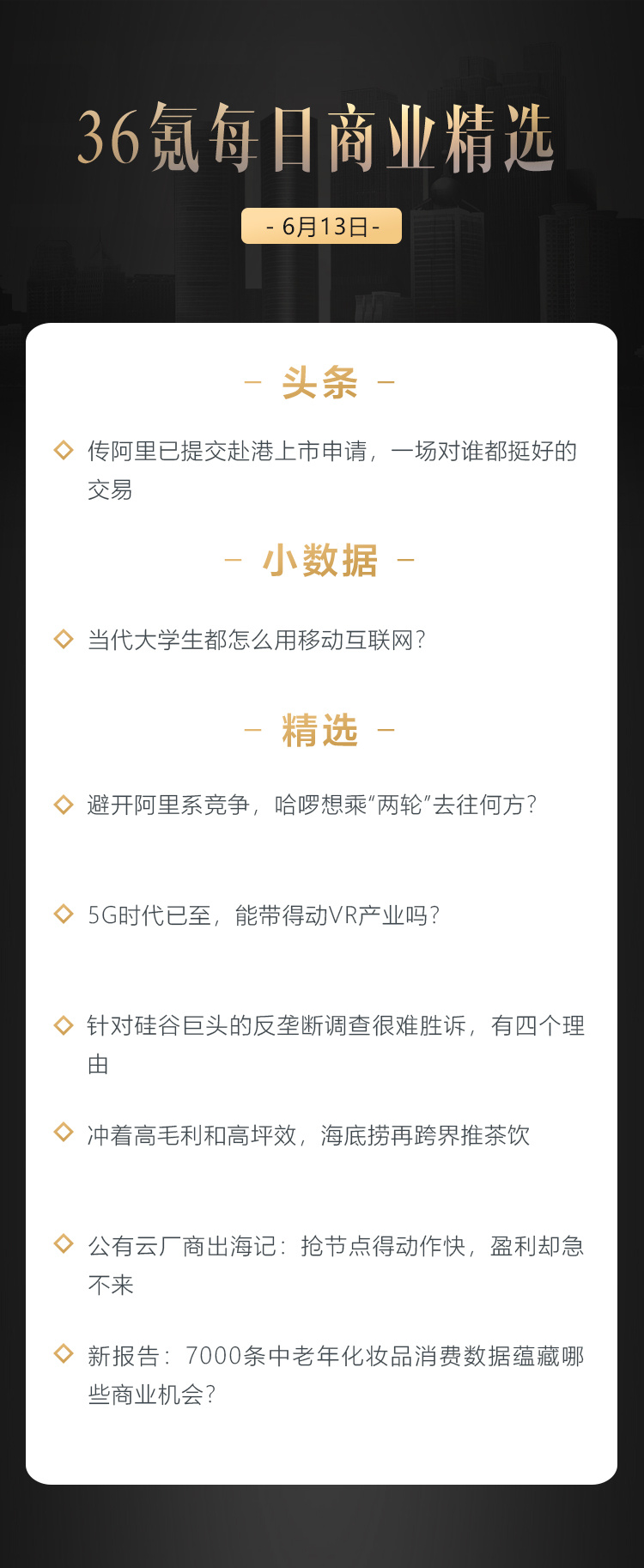 本文来自36氪付费栏目《36氪每日商业精选》——6月13日