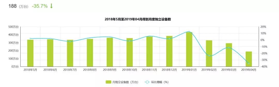 艾瑞数据统计口径下的MAU下滑趋势则更加明显,4月份的MAU(月独立设备数)还不到今年1月份MAU的一半。