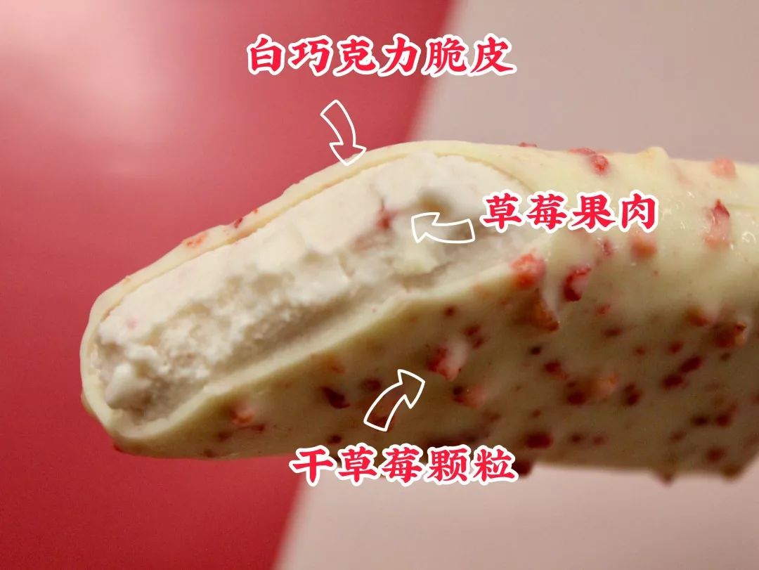 招牌的草莓白巧克力雪糕一打开就有浓郁的草莓香气冲出来,此处@草筱莓。