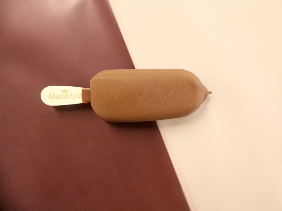冰淇淋简单得有点可爱,咬上面巧克力味,咬下面牛奶味,咬中间就是巧克力牛奶味。相比较从前的2元版本,用料都高级了不少,巧克力略微有点苦,牛奶香甜醇厚,整体口感顺滑。