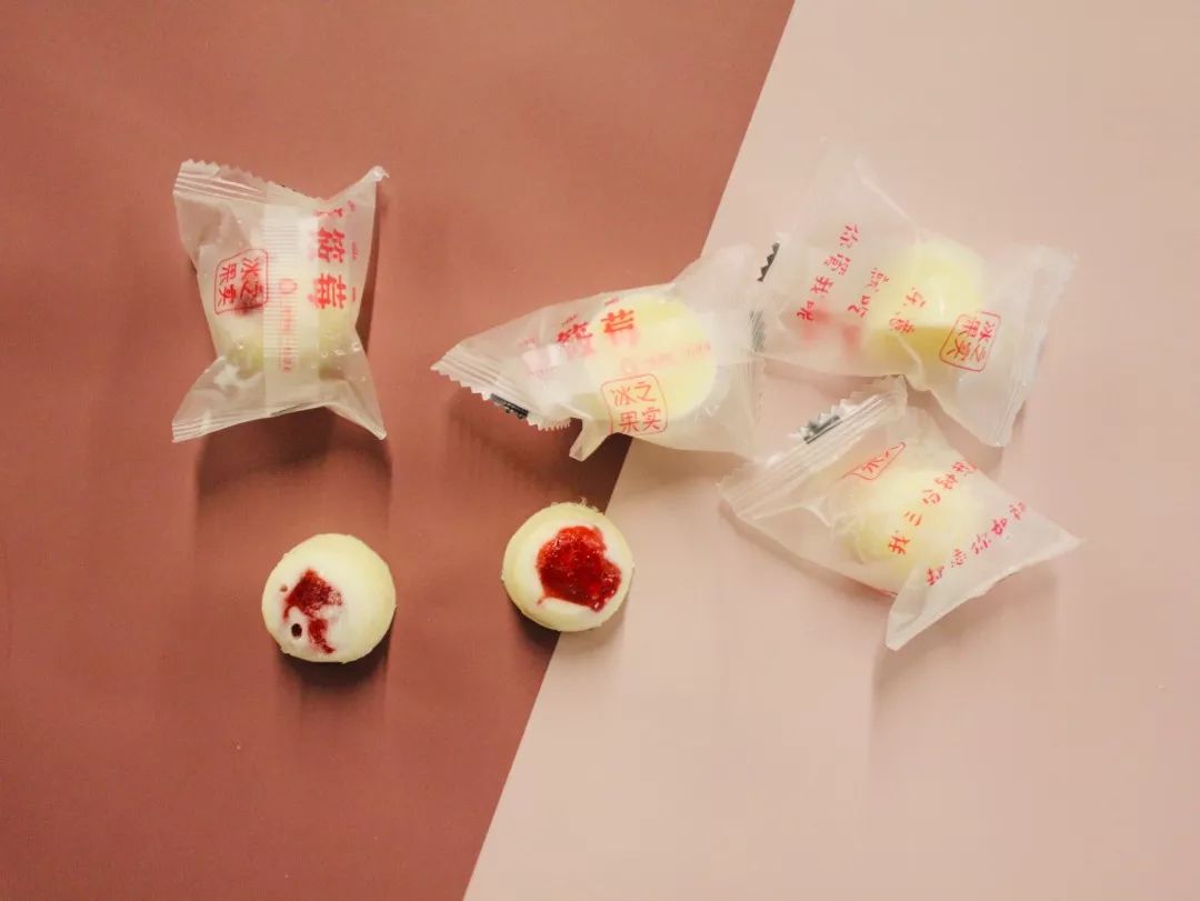一款从名字上就刻意卖萌的冰淇淋。文案还停留在李诞那句用烂了的名言——「众生皆苦,唯有你是草莓味的。」