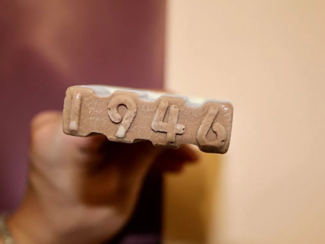 冰淇淋顶端的「1946」字样,充满了仪式感,但是下一秒,他就要被吃掉了。