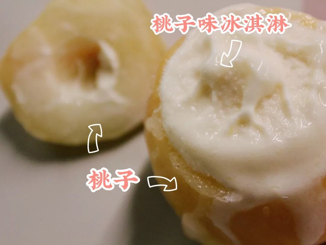 打开里面就是一整个桃子,里面塞满了冰淇淋。
