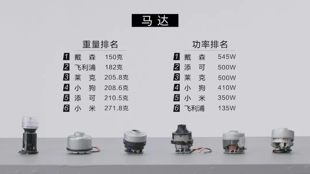 下面,我们将从【马达】、【气旋】、【吸头】三个方面深入分析这几款吸尘器。