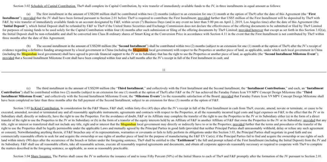 九城今年3月提交给SEC的文件,投资FF的合作条款、涉及莫干山块地的相关内容