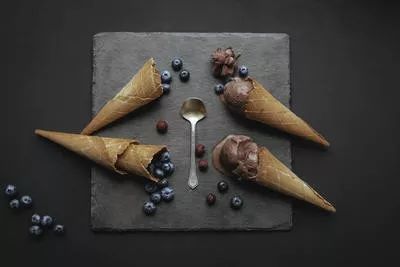 怎么拍怎么好看。无论是空白背景,还是街道背景,抑或蓝天背景,只要拿只双黄蛋雪糕随手一拍,都是阳光四溢热爱生活的模样。