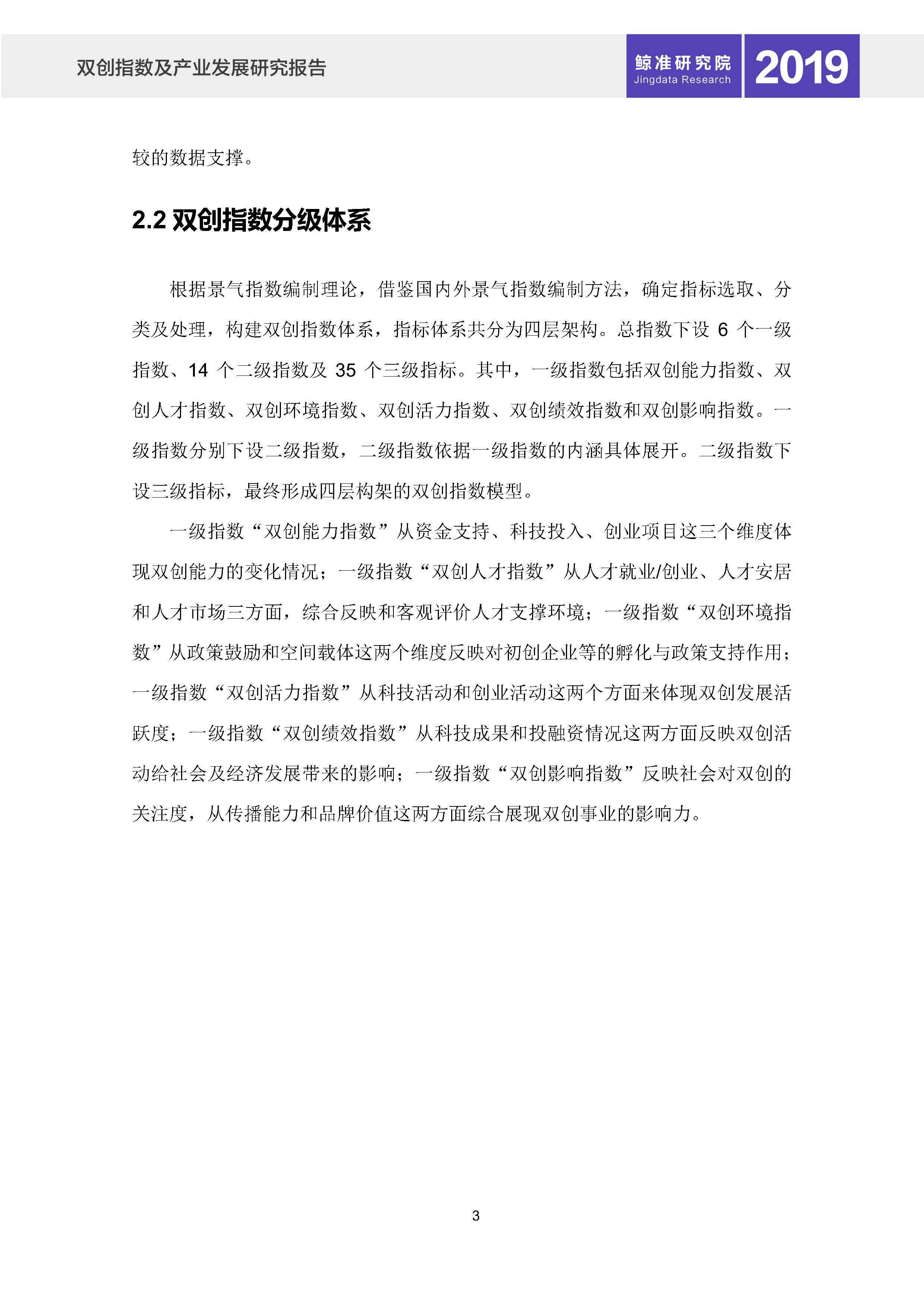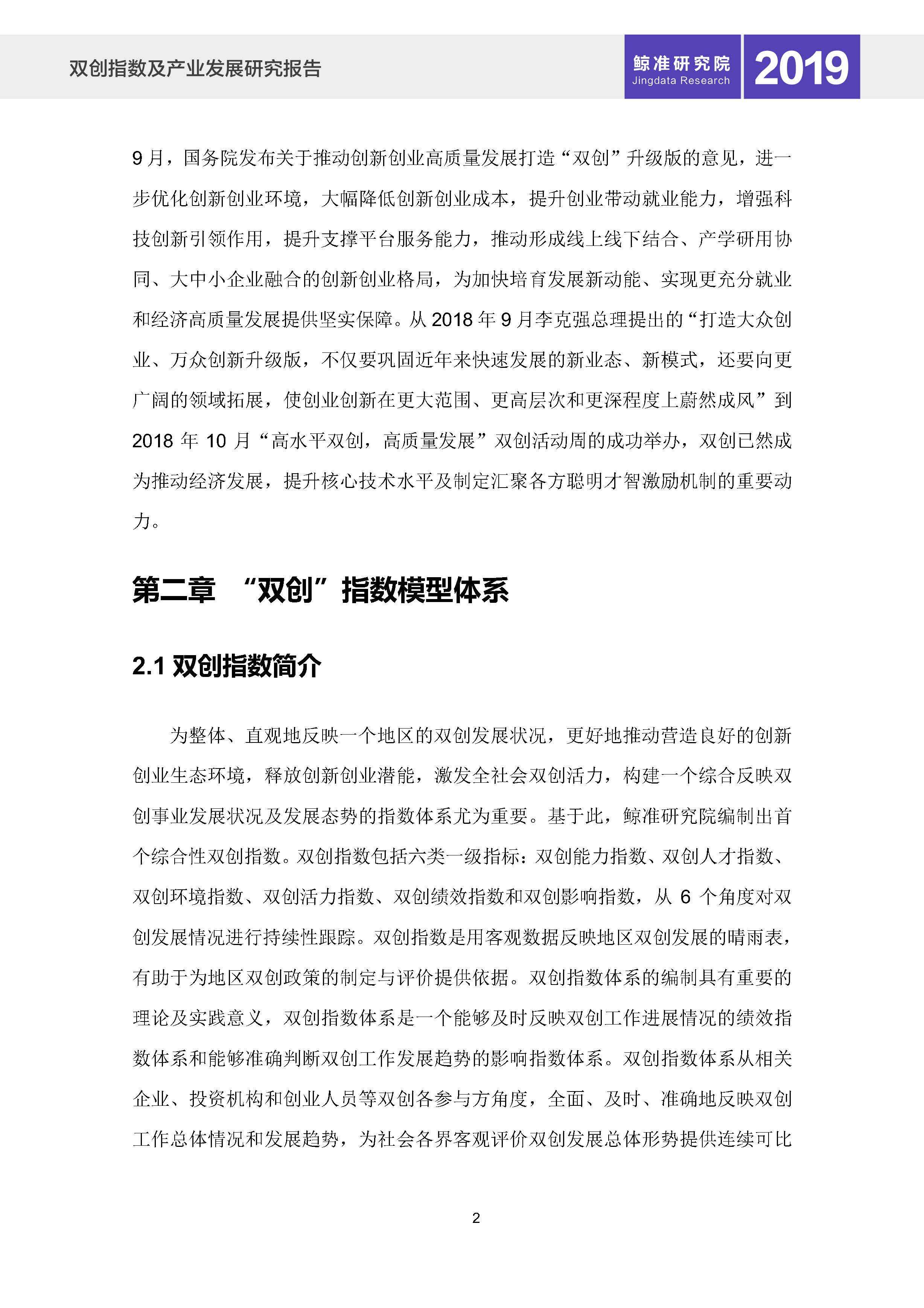 为整体、直观地反映一个地区的双创发展状况,更好地推动营造良好的创新创业生态环境,释放创新创业潜能,激发全社会双创活力,构建一个综合反映双创事业发展状况及发展态势的指数体系尤为重要。基于此,鲸准研究院编制出首个综合性双创指数。双创指数模型体系综合考虑影响双创发展的多重因素,从相关企业、投资机构和创业人员等双创各参与方角度,全面、及时、准确地反映双创工作总体情况和发展趋势,为社会各界客观评价双创发展总体形势提供连续可比较的数据支撑。