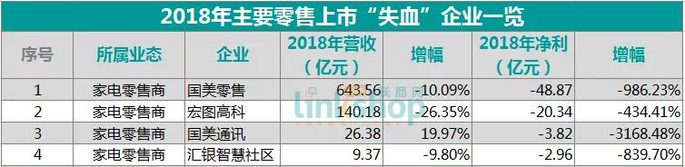 据《联商网》大数据研究中心统计,在143家零售业上市企业中,共有31家企业2018年净利润为负值,且部分企业“失血”加重,亏损值在过去一年进一步扩大。