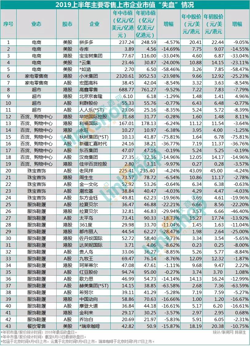 回首过去一年,不少零售上市企业仍持续扩大亏损。此外,当不少企业资本故事还未讲透时,却迎来了市场的当头棒喝。今年上半年,不少上市零售企业市值缩水严重,一些初登上资本市场宠儿股价腰斩,个别企业甚至还面临退市风险。