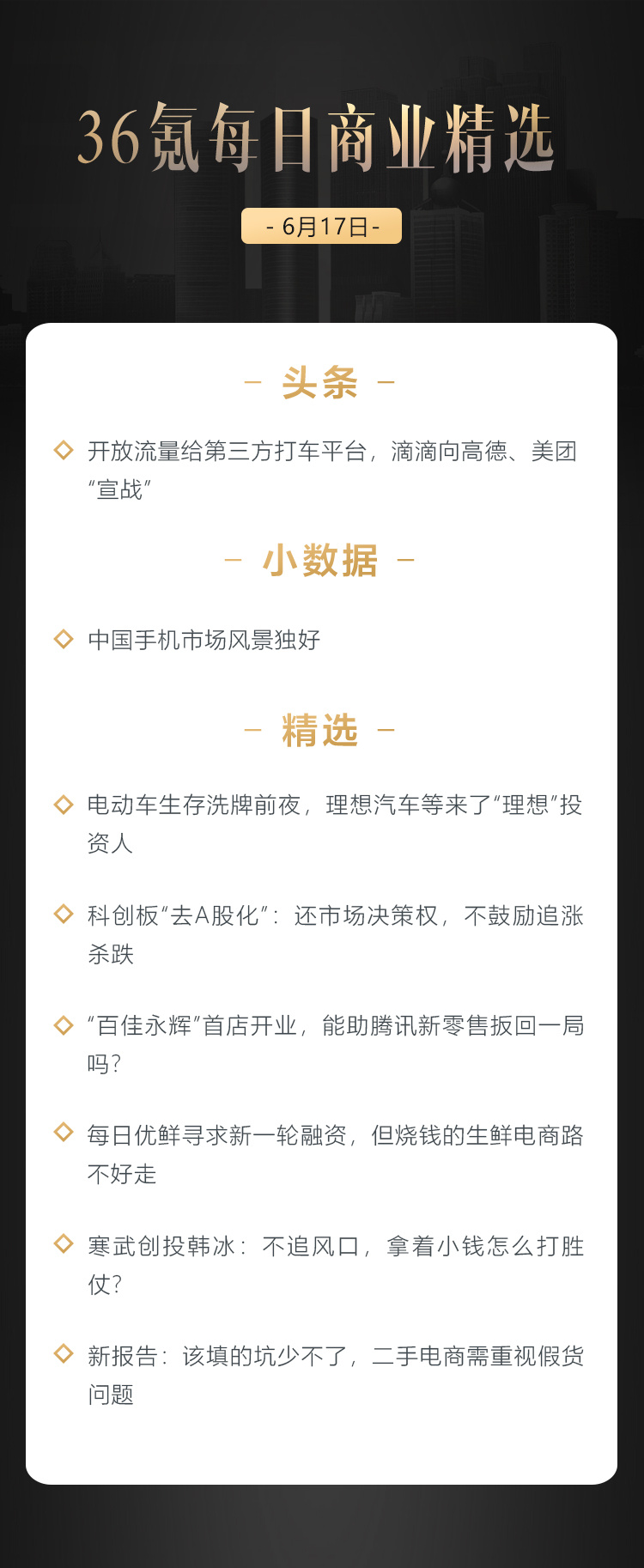 本文来自36氪付费栏目《36氪每日商业精选》——6月17日