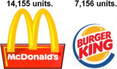 麦当劳在美国的餐厅数量几乎是汉堡王的两倍。
