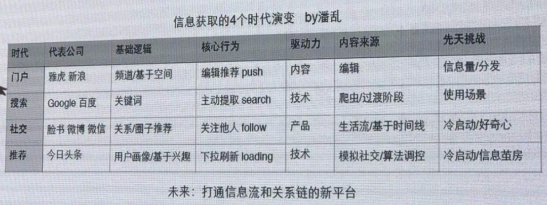 当然,千人千面这个概念也是在时间流面世后才有的,2005-2012年的创业产品都是围绕社交关系来搭的,那会儿把这股潮流叫做web2.0,这种局面直到基于用户画像的个性化推荐流行才从系统宏观调控层面破局。