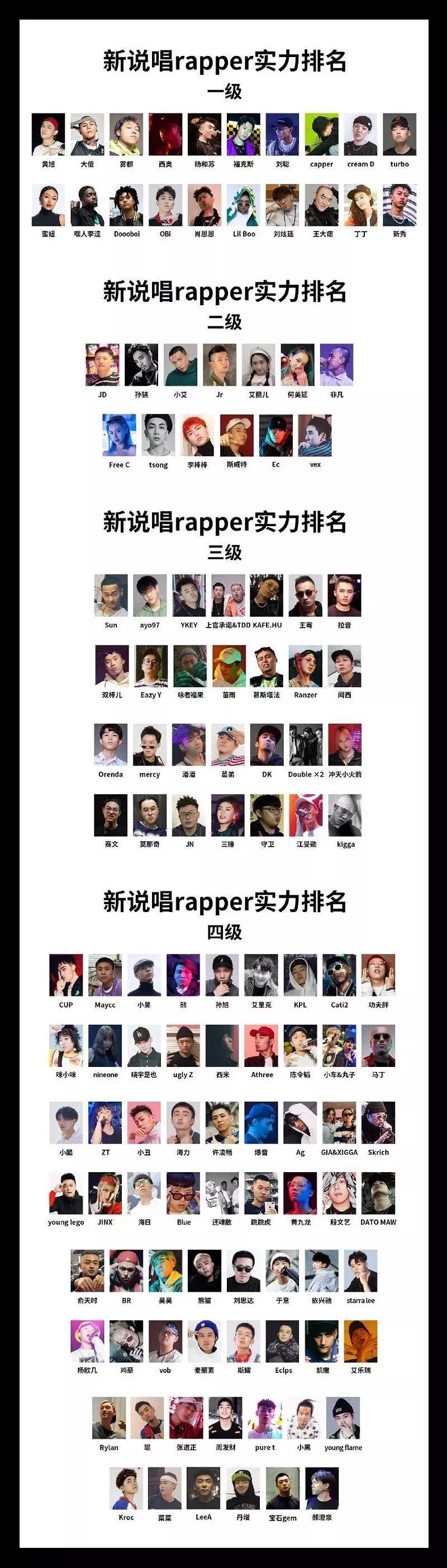 节目还没开播,一组“新说唱rapper实力排名表”就在网上传开,并据说是《新说唱》2019每一轮的选手淘汰表。