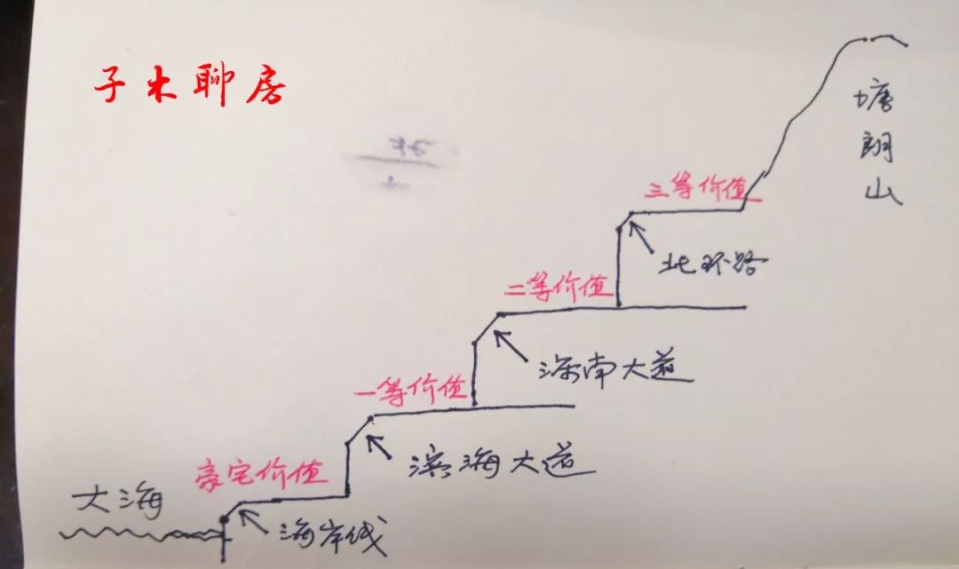从海岸线起至滨海大道为豪宅顶级价值。如半岛城邦、深圳湾一号;从滨海大道至深南大道为一级价值。如中海华庭、中信红树湾等。