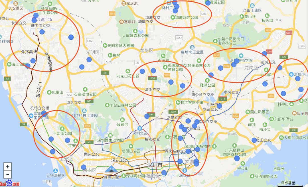 如果再加上70-90平米的刚需面积,做筛选,罗湖因6.9万/平米最低的价格而被淘汰。那么符合条件密集度最高的,首先是罗湖北面的布吉地区。