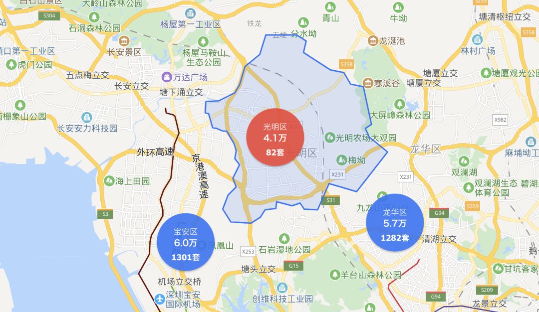 目前的二手房均价是4.1万元/平米,与宝安的6万,龙华的5.7万/平米有较高的价格差,所以光明区属于价格洼地,等地铁6号线开通之后,价值一定会被加速填平。