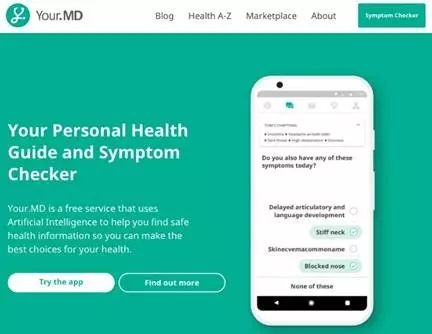 我们分别看看提及率相对最高的前5个产品。前5中有3个功能很类似,也就是Your.MD、HealthTap和Babylon Health,都是面向初诊提供病症自查。注意,所谓的通用初诊智能诊断,寄托在聊天机器人身上的价值,现阶段而且是很长一段时间内,都只是执行预诊性功能,替代医生还很遥远。