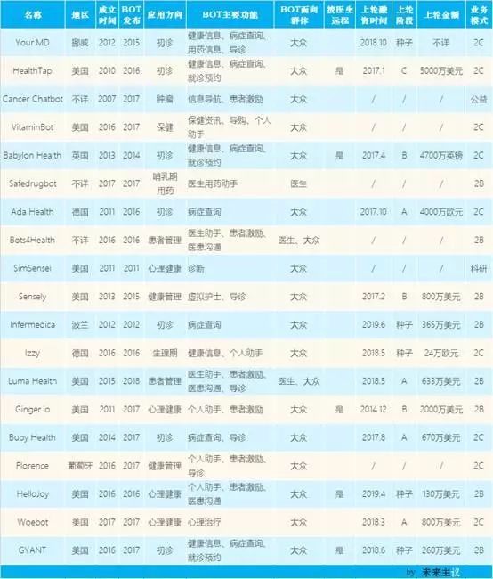 可见本调查中知晓度最高的几个bots在有效商业运营状态的主要是在线自查结合远程医疗的模式,或者可以说这一方向已强者云集。