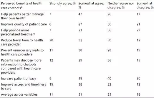 该调查文献Physicians’ Perceptions of Chatbots in Health Care