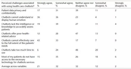 超过一半的医生(53%)在某种程度上同意与使用医疗保健聊天机器人相关的各种挑战。最突出的是,76%的医生认为聊天机器人无法有效地照顾患者的全面需求,72%认为聊天机器人无法理解或显示人类情感,58%认为聊天机器人缺乏准确评估患者的智慧或知识。不过,我们真的需要聊天机器人带着人类情感来满足患者的全面需求吗?