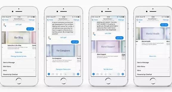 Cancer Chatbot并没有AI能力最高级的、带有智能诊断性质的病症查询功能,而提供让患者获取可靠信息并与可信赖组织取得联系的途径,甚至只是可靠资讯导航。此外,涉及对患者的精神支持与安慰。对一个需要持久战的患者而言,这可能是一个长期陪伴的应用。
