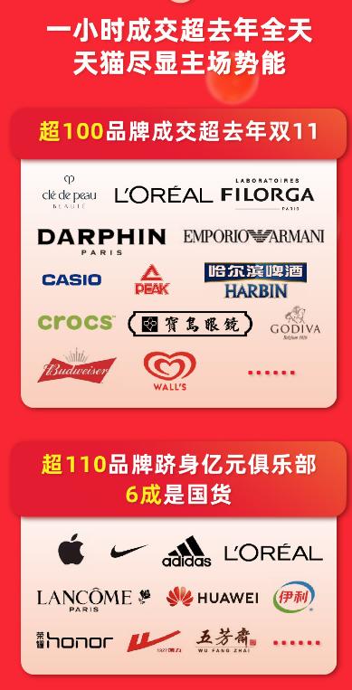 天猫618期间,不同类型的品牌都在淘宝天猫平台获得明显增长。CPB、欧莱雅、屈臣氏、城野医生、特仑苏、匹克等一众品牌天猫618业绩已经超过去年双11,最终销售额超越去年双11的品牌突破百个,超过110个品牌跻身“亿元俱乐部”,最高销量超过去年双11的40倍。