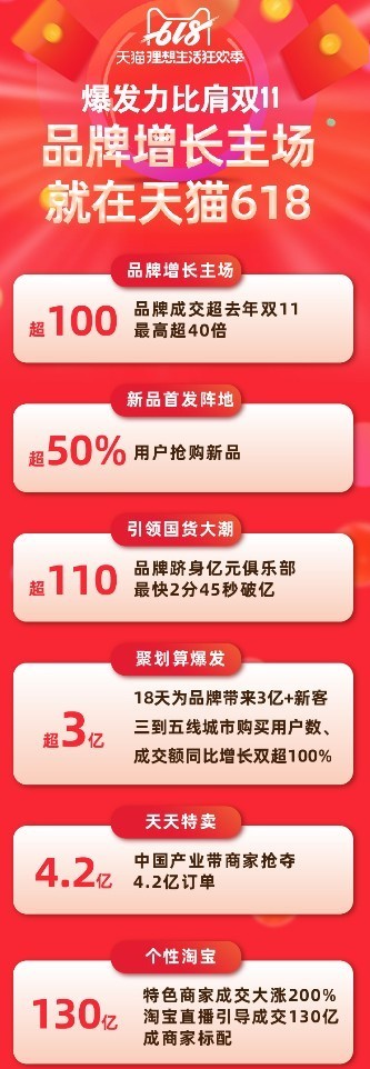 在今年的618启动前,阿里巴巴即透露,要以比肩双11的“史上最大投入”打造今年的天猫618。现在看来,这个flag已经稳稳立住——天猫618为消费者呈现了一场堪比双11的购物狂欢,也为品牌商创造了上半年最大的增长机会。